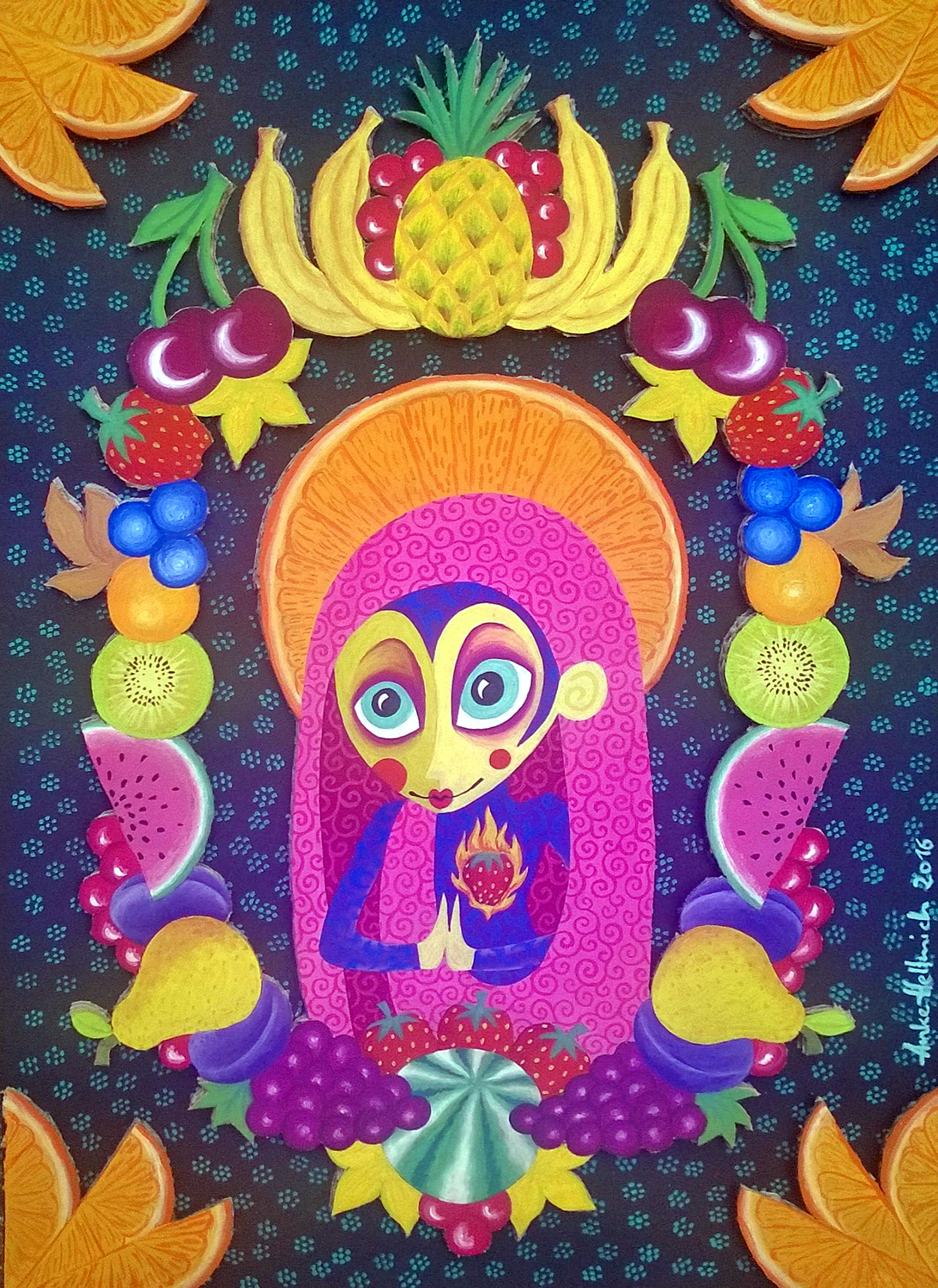 Farbenfrohe Szenen aus gesägtem Karton und Gouache–Farben in außergewöhnlicher 3D-Optik und comicartige Acrylbilder, Bilderserien und Objekte von Anke Hellmich werden für die nächsten 6 Wochen unsere Lokalität zieren.